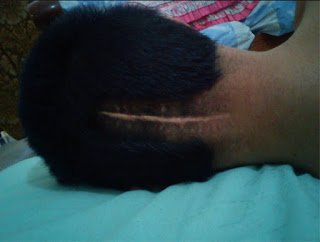Tepat jam 12 tengah malam, mak dan ayah aku harus membuat keputusan untuk pembedahan di kepala aku, pembedahan perlu dilakukan kerana terdapat darah dalam otak aku di bahagian cerebellum. secara officialnya, aku masuk bilik operation jam 3 pagi, 3 oktober 2011 untuk pembedahan kepala. lebih kurang dua jam aku dalam tu. pada masa sekarang kakak aku simpulkan secara ringkasnya, segala yang mereka lalui di awal babak di hospital dahulu tak jauh beza macam dalam drama drama melayu, yang mana waris si pesakit harus buat keputusan di luar bilik operation, waktu kemuncak bagi sesebuah drama melayu kan. tapi itu lakonan, yang realitinya di sini.